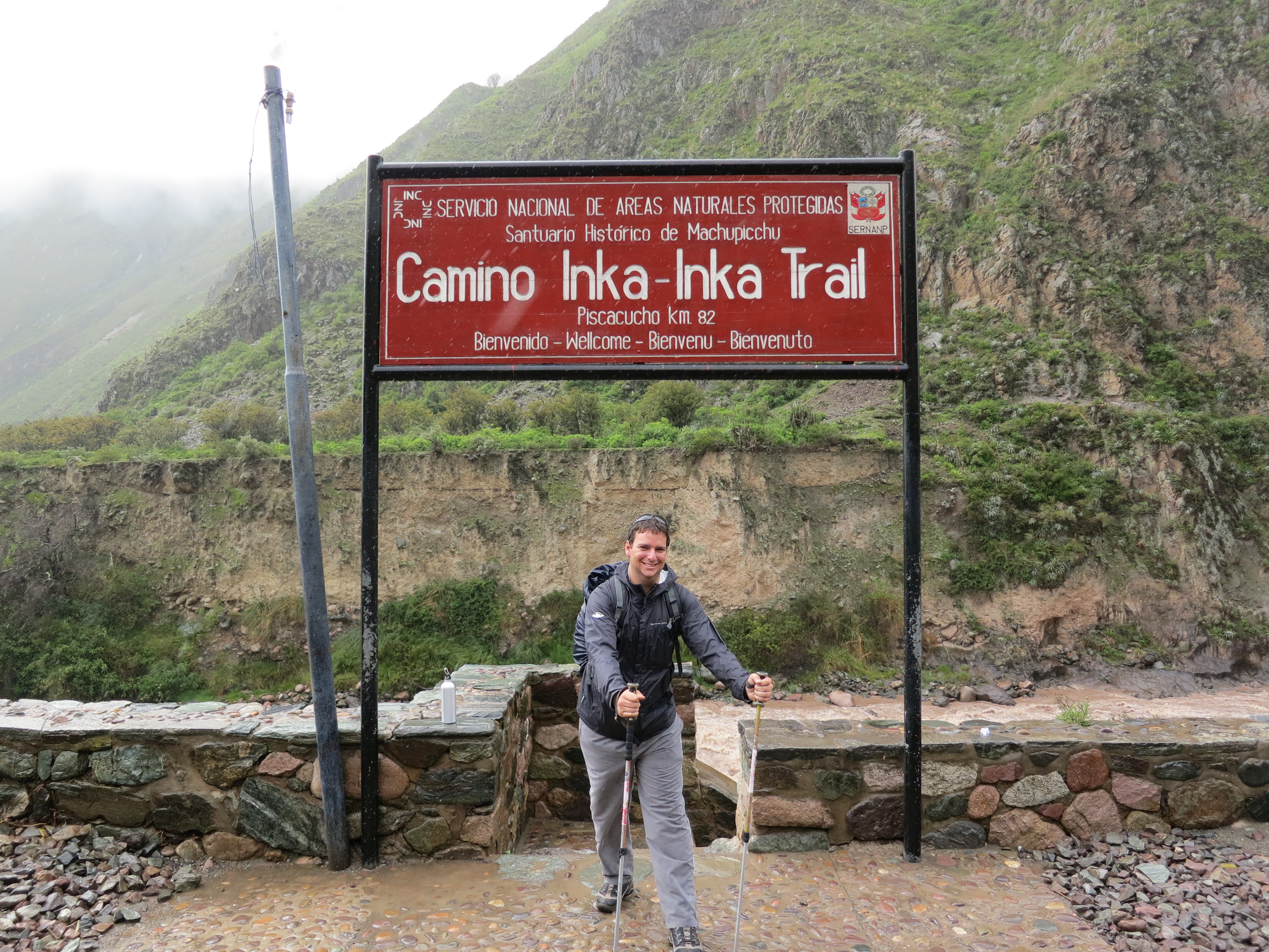 It all begins on a chilly Tuesday morning in Cuzco’s Plaza Regocijo. We met at some ungodly hour of the night (I later found out it was 4:30am), and boarded the bus to our impending doom. After a hearty breakfast at Ollantaytambo with some sketchy tasting milk, we continued our drive to the location known only as Kilometre 82, literally a railway milepost with an Inca Trail control point attached.