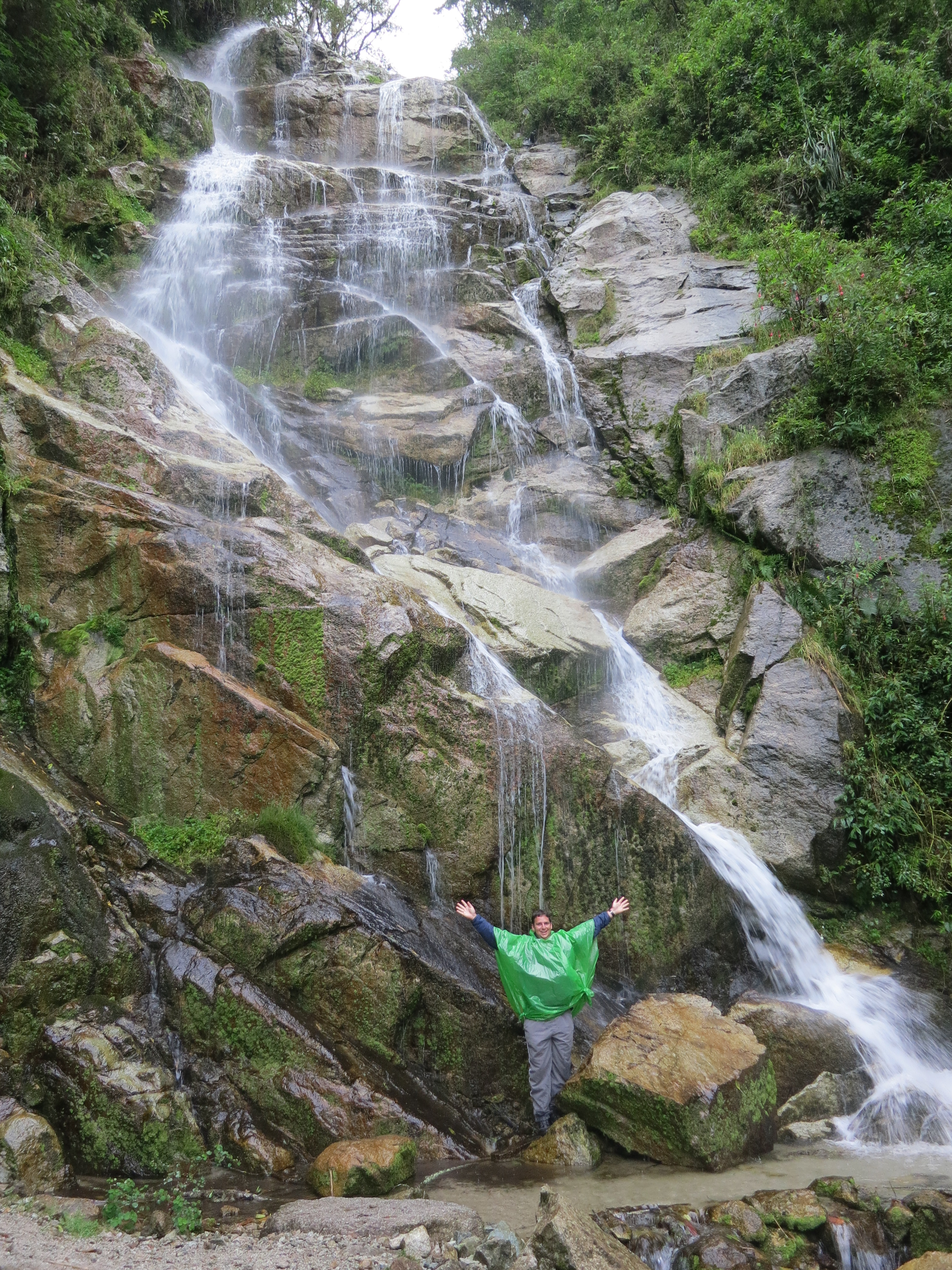 Day 3, by comparison, was easy. Some more ‘flats’ for the first couple of hours (this time, ‘flats’ were a relief more so than a curse), and then a 1000 metre descent. I could feel the air getting fresher (and denser) as we went down the hill, it was exhilarating. We made it to the bottom by lunch and enjoyed a nap, before getting to explore the Inca ruins of Wiñay Wayna and dipping into the so-called nearby Fountain of Youth, a waterfall that is said to stop the aging process where the water touches the skin. Though I suspect it is an attempt by the tour guides to get the ladies out of their clothing. I stood under the waterfall in a poncho and jacket, but some water dripped down my neck underneath my clothing, so when I am 50, I expect to have streaks of supple skin separating vertical stripes of wrinkles.