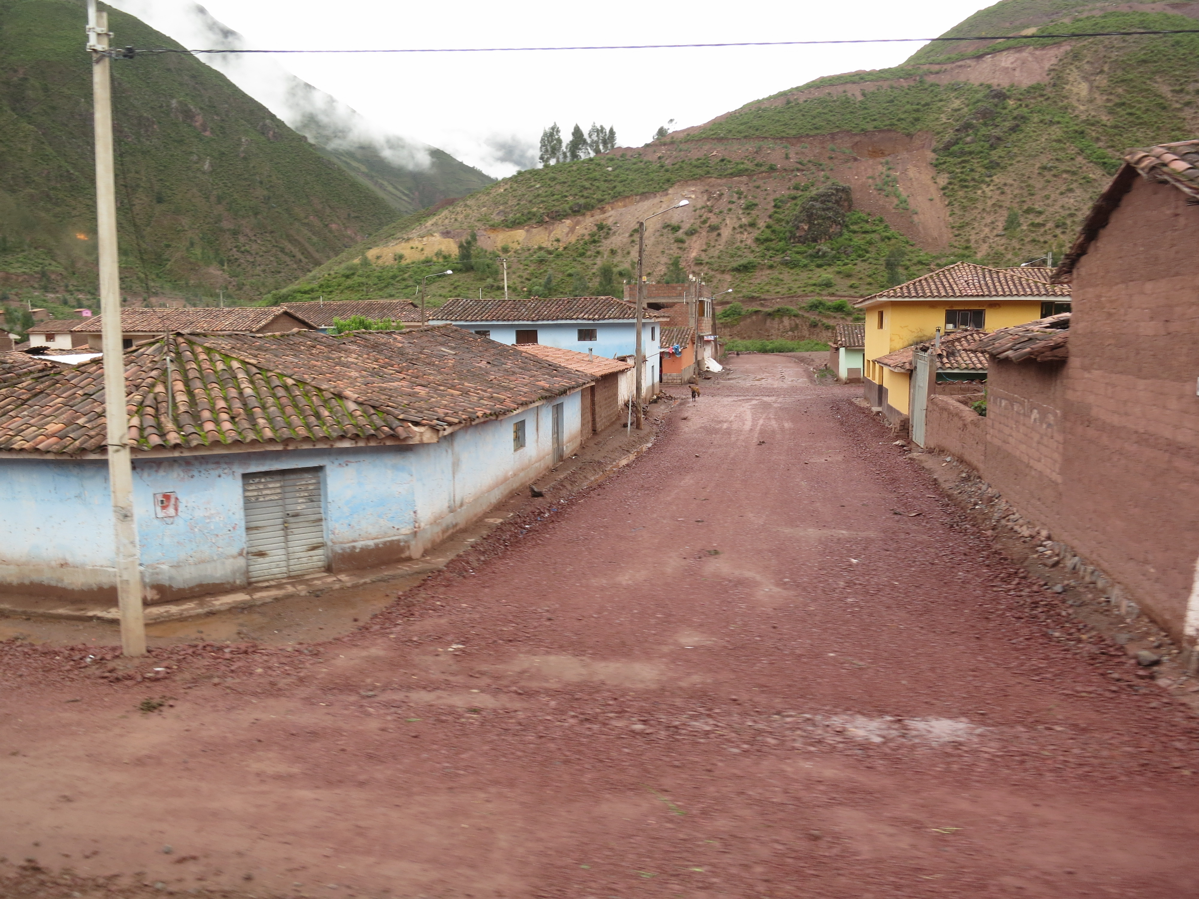 • wet – my LAN Airbus A319 failed at its first attempt at landing in Cuzco and had to try again. It was quite unnerving hearing the engines fire up to full throttle at the last minute before the expected landing, in the middle of a cloud, when you are flying through the Andes, which incidentally is littered with mountain peaks 3000m higher than the airport we were attempting to land at. That should give some indication of the weather in Cusco.