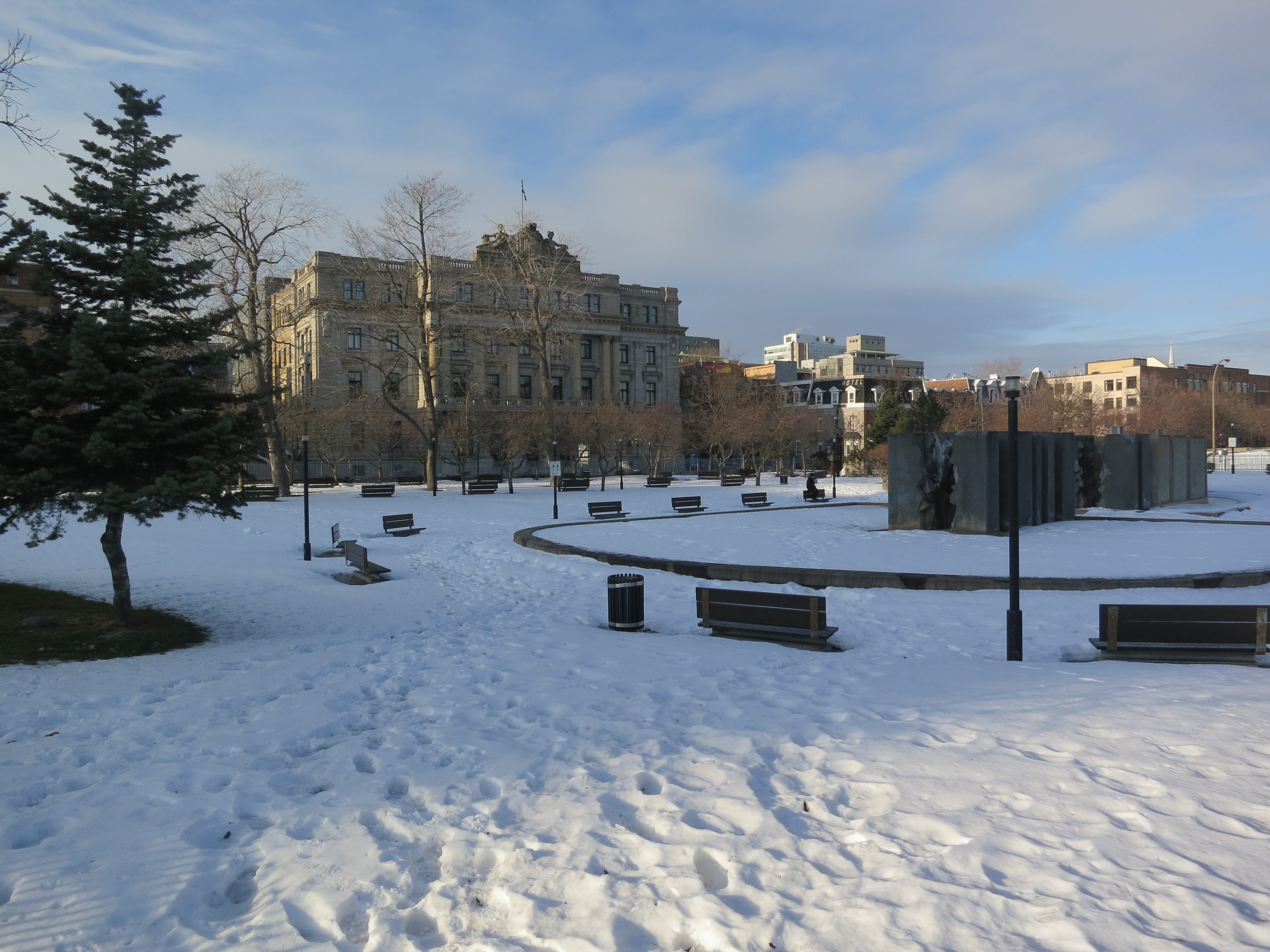 But for the two and a half hours of sunny skies that I did get to see Montreal, it was magnificent. The old part of the city was a pleasure to walk through, resplendent with gorgeous architecture with very obvious European inspiration. A light layer of snow and ice carpeted the parks and other public spaces, while the municipality did an excellent job of keeping the roads and footpaths clear.